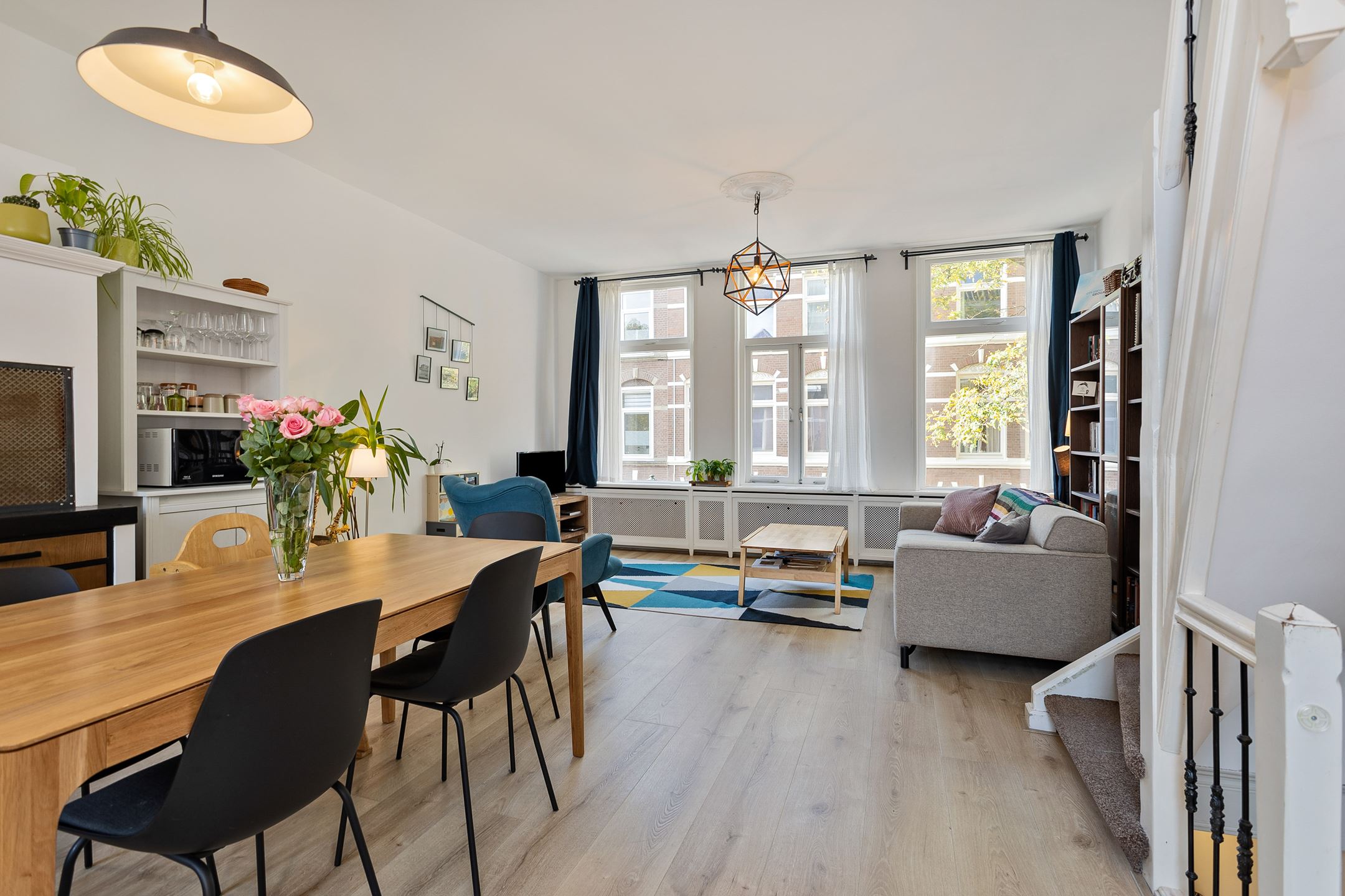 This multifunctional 4-storey terraced house has 4 bedrooms and 2 bathrooms and is within walking distance of the cozy shops and nice lunch spots on Weimarstraat and Reinkenstraat.